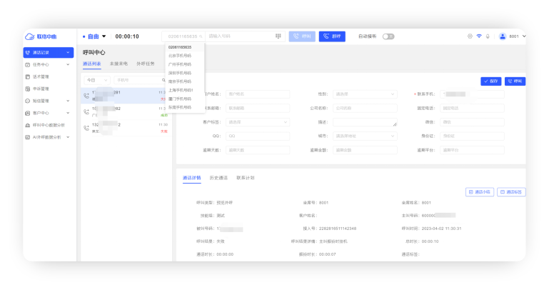 XXBPO催收外包公司拥有1000+人员坐席外呼,在贷后任务中,通信通存在如下问题:通话记录,录音数据同步等过程繁琐,运营商直签线路,线路封停风险高,无备份线路数据量大,空号等无效数据较多,拨打占用时间较多,效率低。